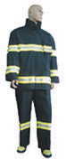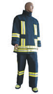 Isı yansıtıcı görünüm lensi ile Ceket:İçten solunum aparatı takmaya uygun Pantolon Eldiven. Kauçuk itfaiyeci çizmesi:Alüminize kılıfı ile Taşıma çantası