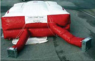 Yangında kişilerin yüksekten atlayıp kurtulmalarını sağlar. 6 köşesinden tutularak yukarı aşağı sallanmak suretiyle içi hava ile doldurulur. Özel polyester kumaştan imal edilmiştir. Bütün yüzeyleri kolonlarla takviyelidir.
